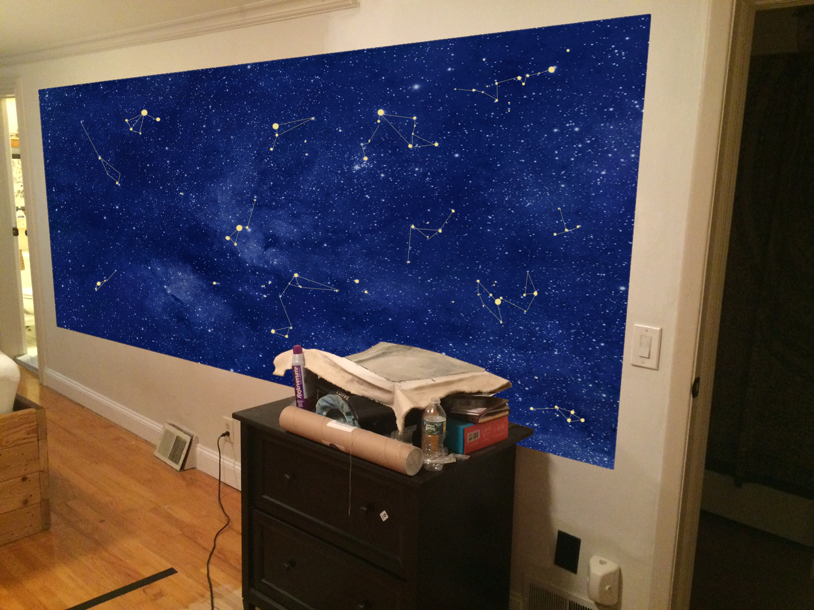 CONSTELLATION MURAL Scenic Painting PRIVATE COMMISSIONLARGE FRAMED MURAL FORUSE IN PRIVATE RESIDENCE2019DESIGN & EXECUTION RENDERING & FINAL PRODUCT